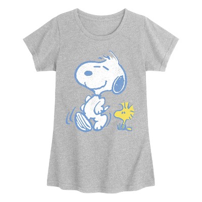 Girls' - Peanuts - Snoopy And Woodstock Pastels Fitted Short Sleeve Graphic T-Shirt