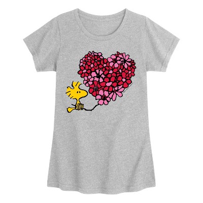 Girls' - Peanuts - Woodstock Floral Heart Fitted Short Sleeve Graphic T-Shirt