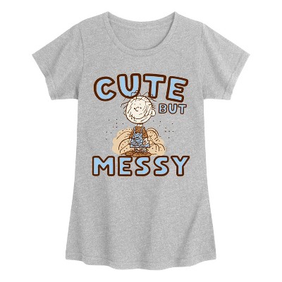Girls' - Peanuts - Cute But Messy Fitted Short Sleeve Graphic T-Shirt