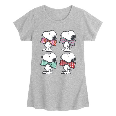 Girls' - Peanuts - Bowtie Patterns Fitted Short Sleeve Graphic T-Shirt