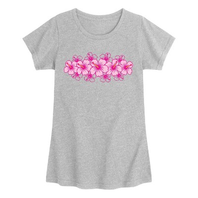 Girls' - Instant Message - Hibiscus Flowers Fitted Short Sleeve Graphic T-Shirt