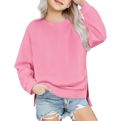 Arshiner Girls Crewneck Sweatshirt Long Sleeve Pullover Tops Drop Shoulder Sweatshirts Side Split for 5-14 Years Peach Pink 13-14 Years
