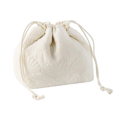 Narwey White Shells Drawstring Quilted Cotton Makeup Pouch,Coquette Quilted Toiletry Bag for Women and Girls, Floral Coquette Organizer Bag