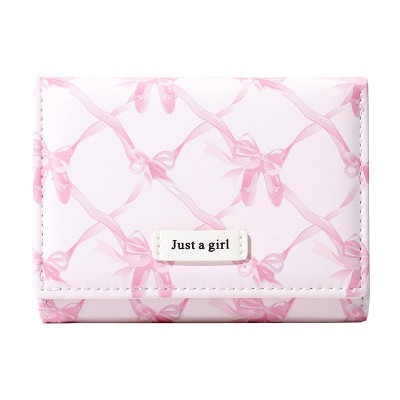 Narwey Girls Cute Ballet Slippers Print Coquette Bow Wallet Small Wallet Card Holder ID Window