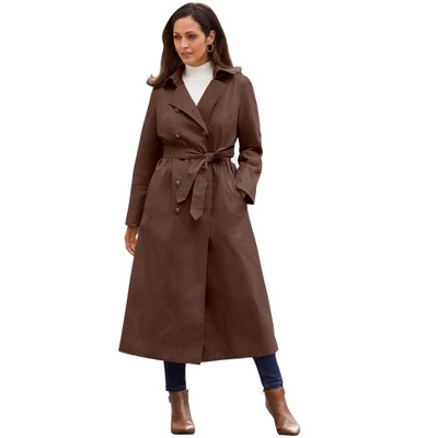 Jessica London Double-Breasted Long Trench Raincoat