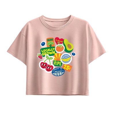 Girls' - Instant Message - Fruit Stamps Short Sleeve Boxy Graphic T-Shirt