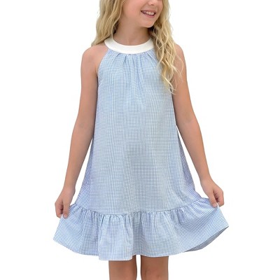 INSPIRE CHIC Girls' Casual Halter Neck Sundress Plaid Dress Above-Knee Length Dress