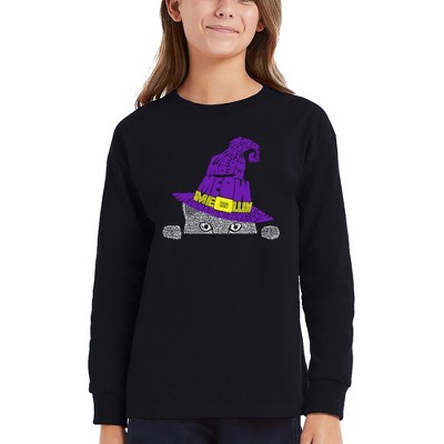 LA Pop Art Peeking Witch Cat - Girl's Word Art Long Sleeve T-shirt