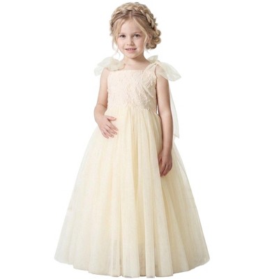 2Bunnies Girls' 3T-10yr Lily Adjustable Shoulder Bow Tie Tulle Flower Girl Dress