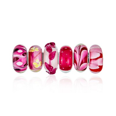 Bling Jewelry Mixed Set Silver Core Red Pink Floral Murano Glass Charm Bead for Bracelet