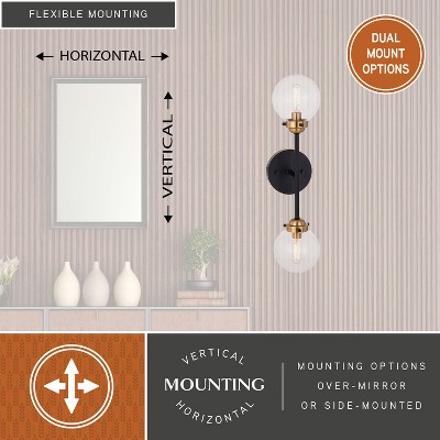 VAXCEL Orbit Brass and Oil Rubbed Bronze Industrial MCM Wall Sconce Light Clear Glass Globe