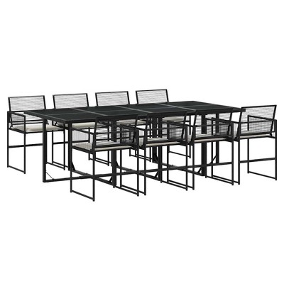 vidaXL Dining Set Black Polyethylene rattan, Powder-coated steel, Glass