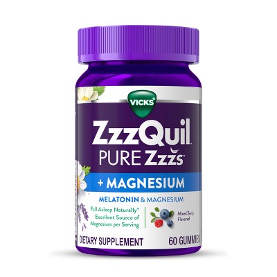 ZzzQuil Pure Zzzs + Magnesium Gummies - Mixed Berry - Melatonin - 60ct
