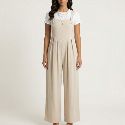 Anna-Kaci Women's Sleeveless Wide Leg Overalls Jumpsuit with Adjustable Shoulder Straps Pleated Front Relaxed Fit