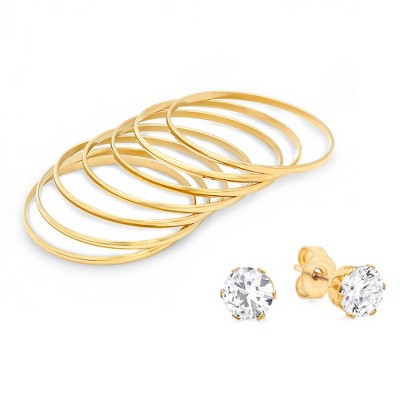 Steeltime Set of 7 Bangles with Simulated Diamond Earrings