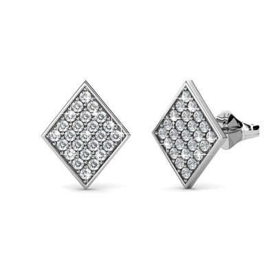 Cate & Chloe Lennon 18K White Gold Plated Pavé Stud Earrings with Swarovski Crystals, Butterfly Back Earrings Gift for Women