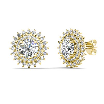 14K Gold over Sterling Silver Simulated Diamond Halo Stud Earrings