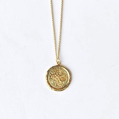sanctuaire Round Rosette Medallion Coin Necklace Gold