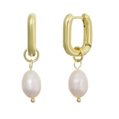 Adornia 14k Gold Plated Detachable Freshwater Pearl Rectangle Huggie Hoops