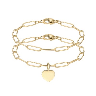 Adornia Gold 2-Piece Heart Charm and Paperclip Bracelet Set