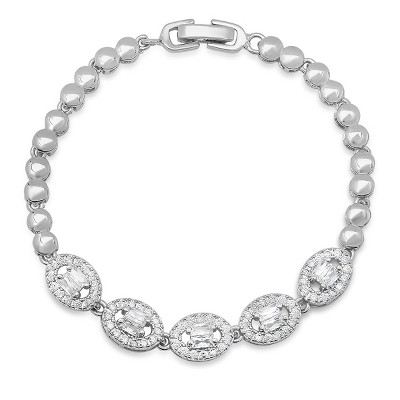 Steeltime Ladies 18k white gold plated brass oval cut simulated diamonds dotted link tennis bracelet