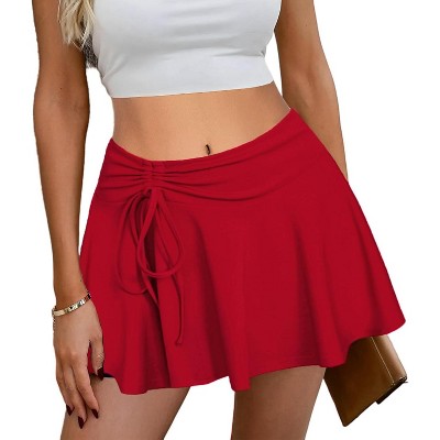 - red pleated skirt