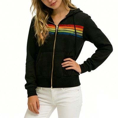 Women's Vintage Rainbow Stripe Zip Up Hoodie Drawstring Casual Hooded Sweatshirt with Pockets