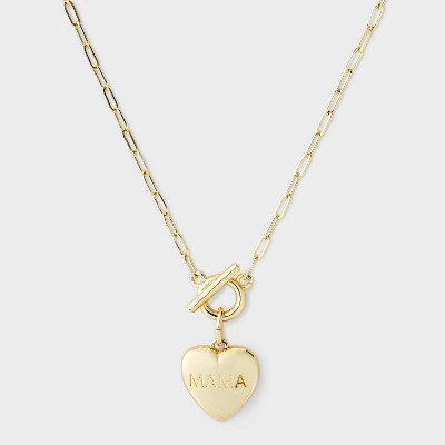 14k Gold Dipped "Mama" Toggle Puffed Heart Pendant Necklace with Paperclip Chain - A New Day™ Gold