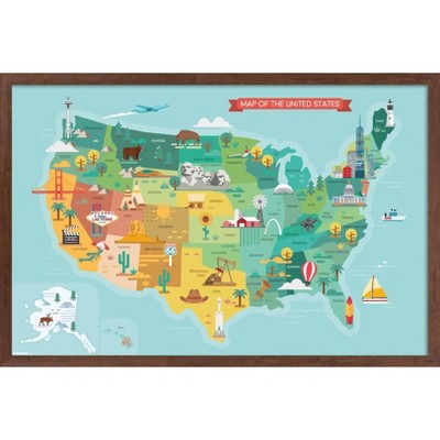 Trends International Geography - USA Map Landmarks And Icons 26 Framed Wall Poster Prints