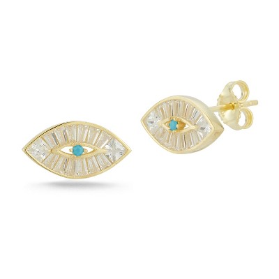 Sphera Milano Sterling Silver Baguette Evil Eye Stud Earrings