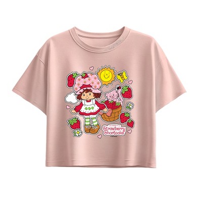 Girls' - Strawberry Shortcake - Strawberry Stickers Short Sleeve Boxy Graphic T-Shirt