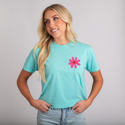 Happy Vibes Flower - Women's Boxy Crop Top Graphic T-Shirt
