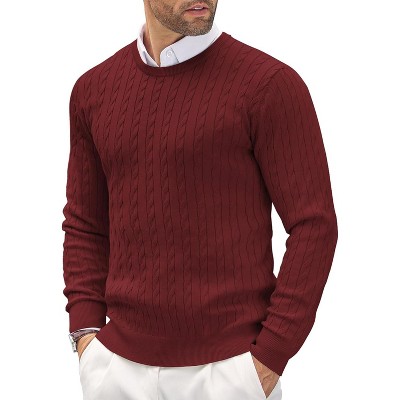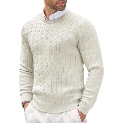 COOFANDY Men's Crewneck Knit Sweater Slim Fit Lightweight Casual Twist Patterned Cable Knitted Pullover