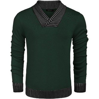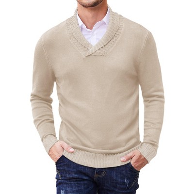COOFANDY Men's Shawl Collar Sweaters V-Neck Relaxed Fit Cable Pullovers