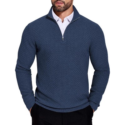 COOFANDY Quarter Zip Pullover Men Dress Sweaters Long Sleeve Jacquard Checkered Sweater NAVY L