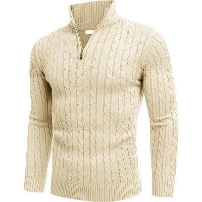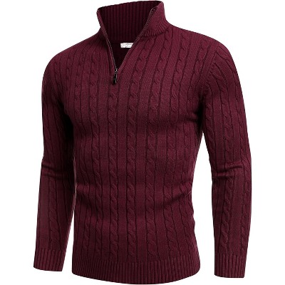COOFANDY Men's Quarter Zip Sweater Slim Fit Casual Knitted Turtleneck Pullover Mock Neck Polo Sweater