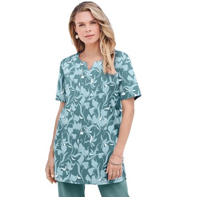 Roaman's Plus Size Soft Knit Print Tunic With Notch Neckline