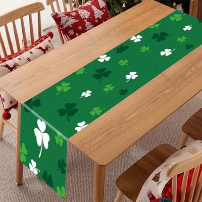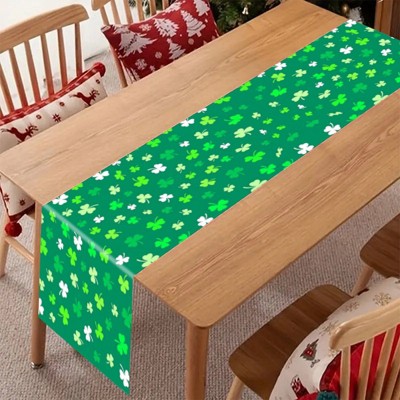 St. Patrick's Day Mixed Clover Green Linen Table Runner - Thick, Wrinkle-Resistant, Easy to Clean for Holiday Use 12.99 in x 70.87 in