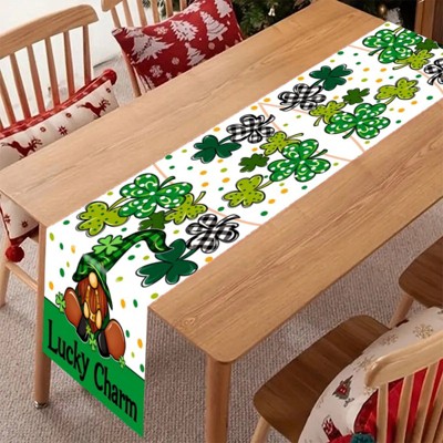 Gnome, Gold Coin & Horseshoe Linen Table Runner - Lucky St. Patrick's Day Decor, Durable & Wrinkle-Free for Irish Themed Parties 12.99 in x 70.87 in