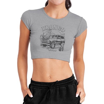 Women's Ford Bronco Desert Black Mono Cap Sleeve Baby Rib Crop Top