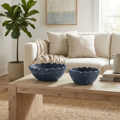 Modern Scallop Edge Decorative Bowls for Coffee Table Decor - Elegant Handcrafted Centerpiece Bowls and Stylish Home Accent - Set of 2, 5", Blue