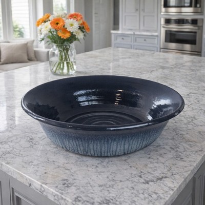 Artistic Decorative Glazed Pottery Bowl for Coffee Table - Contemporary Centerpiece Table Decoration and Home Decor Accents -4.25", Black