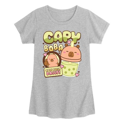 Girls' - CapyFun - Capy Boba Fitted Short Sleeve Graphic T-Shirt