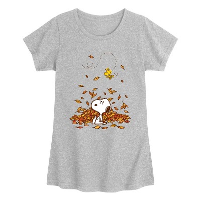 Girls' - Peanuts - Snoopy & Woodstock Leaves Fitted Short Sleeve Graphic T-Shirt