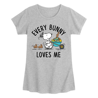 Girls' - Peanuts - Every Bunny Loves Me Fitted Short Sleeve Graphic T-Shirt
