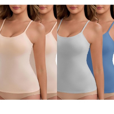 INSPIRE CHIC Women's Modal Adjustable Spaghetti Straps Padded Slimming Round Neck Casual Camisoles Multipacks