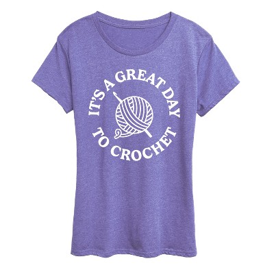 Women's - Instant Message - It's a Great Day to Crochet Lightweight French Terry Wide Neck Long Sleeve Graphic Shirt