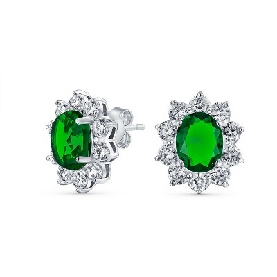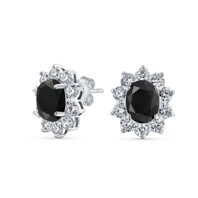 Bling Jewelry Classic Style Crown 1.5 CT CZ Halo Oval Cubic Zirconia Stud Earrings Rhodium Plated Brass