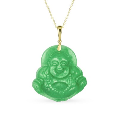 Bling Jewelry Yogi Amulet Green Jade Laughing Buddha Pendant Necklace 14K Gold Plated Silver