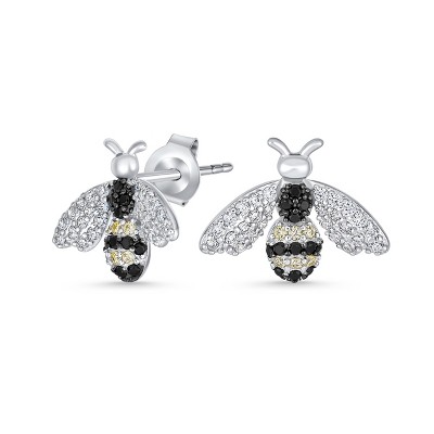 Bling Jewelry Estate Art Deco Style Garden 3D Insect Micro pave Black White Cubic Zirconia Queen Bumble Bee Stud Earrings Sterling Silver
